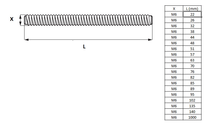 Threaded Bolt M6x44mm, Steel, Yellow Zinc Plated