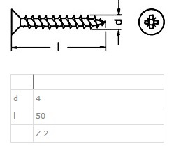 Chipboard Screw, CSK, PZD, SS A2, ø4,0x50mm, Fully Threaded