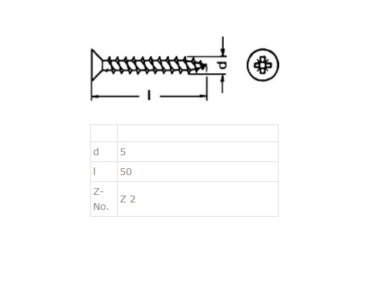 Chipboard Screw, CSK, PZD, SS A2, ø5,0x50mm, Fully Threaded