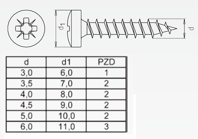 Chipboard Screw, Pan Head, PZD, Steel YZP, 4,0x40mm, Full Thread