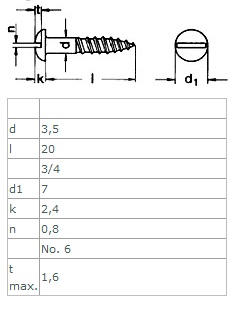 Wood Screw, RDH, SS A2, 3,5x20mm, DIN 96 Slot