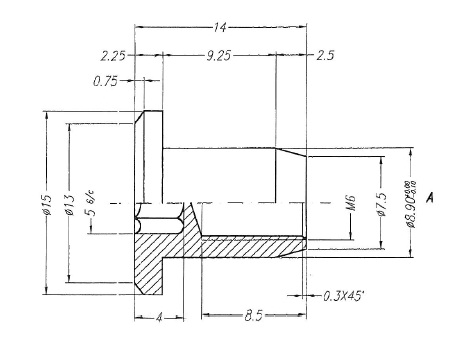 Combifix Head No. 1012, 5mm Hex, M6, Flat Head,Brass Natural