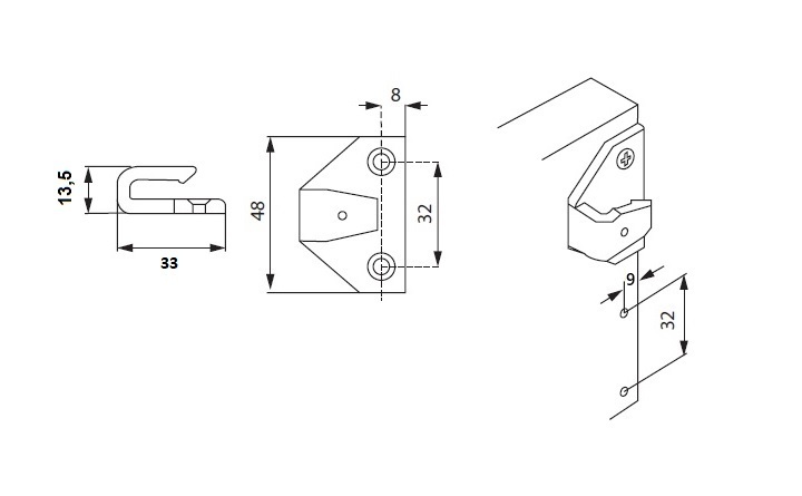 Clip Panel Connector "Push Fit",Hook Male Only,F/Euro Screws , Black PC, (NOT FOR SALE IN GERMANY)