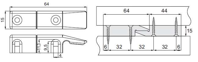 Multi Clip Connector, Black PC, 15x64mm, Universal