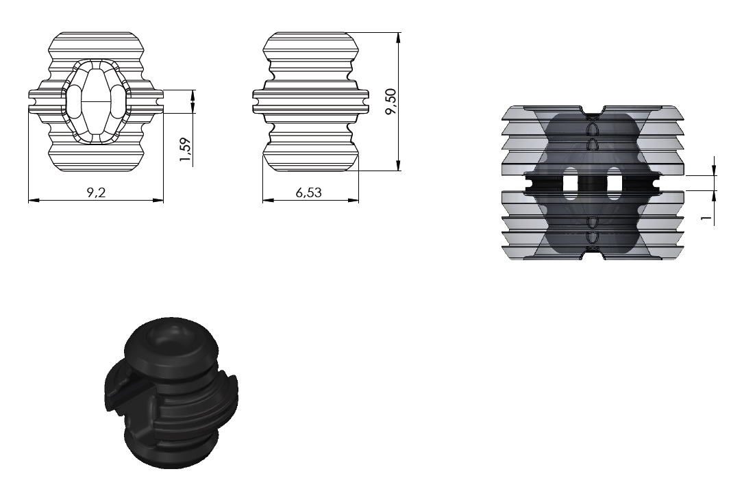 Snap Fitting "Diva" Male Part - 1 mm, Black PC, ø10 x 9,5mm