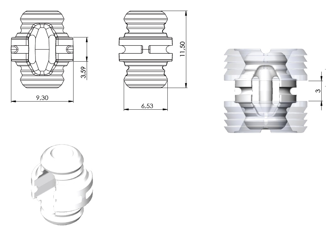 Snap Fitting "Diva" Male Part - 3,0 mm,White PC,ø10 x 11,5mm