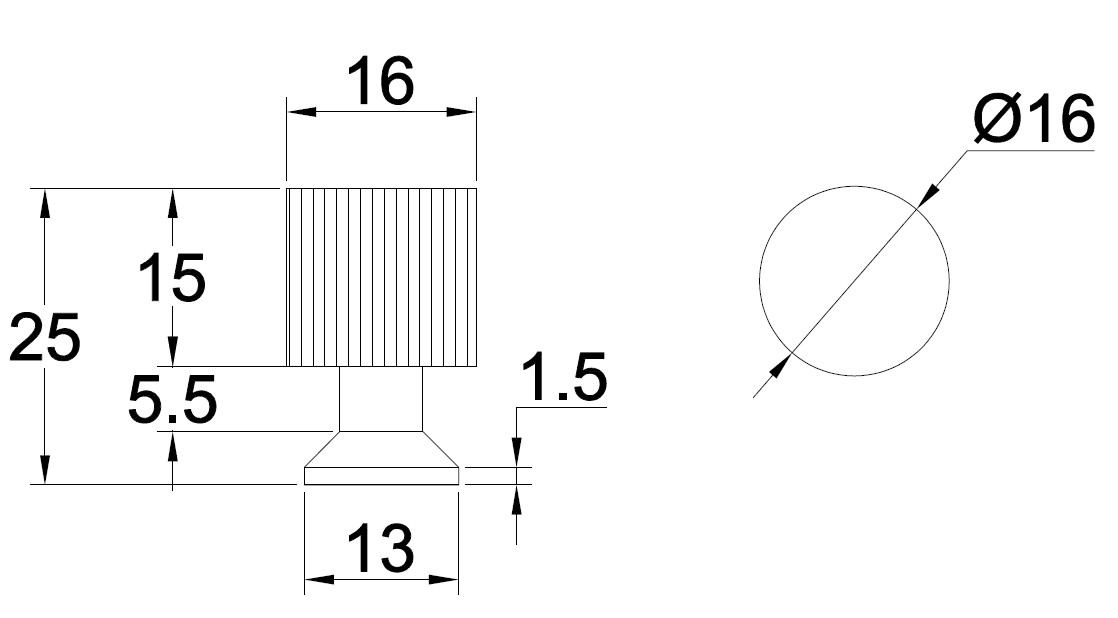 Knob "Justa" ø16x25mm, Satin Brass, Brass Material, Incl. 1 Pcs of M4x25mm. Screw