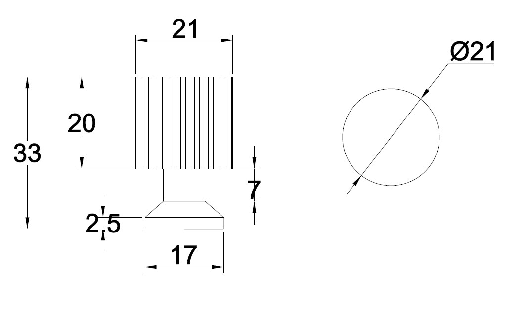 Knob "Justa" ø21x33mm, SS-Look, Brass Material, Incl. 1 Pcs of M4x25mm. Screw