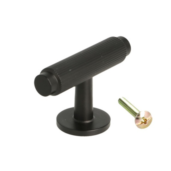 T-Handle "Justa" ø13x56mm, H:36mm, Black Finish, Brass Material, Incl. 1 Pcs of M4x25mm. Screw + 1 Pcs of M4x30mm 15/15mm. Hangerbolt