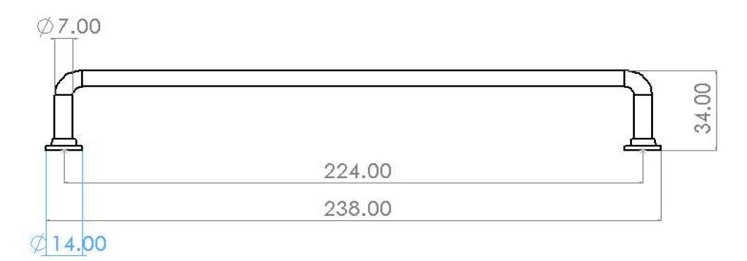 D-Handle "Diana", Brass, cc 224mm, ø7x238mm, SS-Look, H 34mm With M4x25mm Screws
