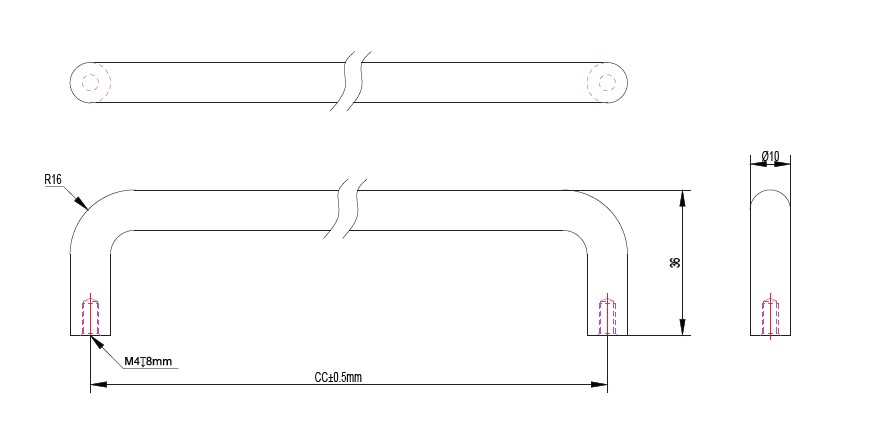 D-Handle "Galla", SS201, cc 96mm, ø10x106mm, Brushed Brass, H 36mm, With Screws