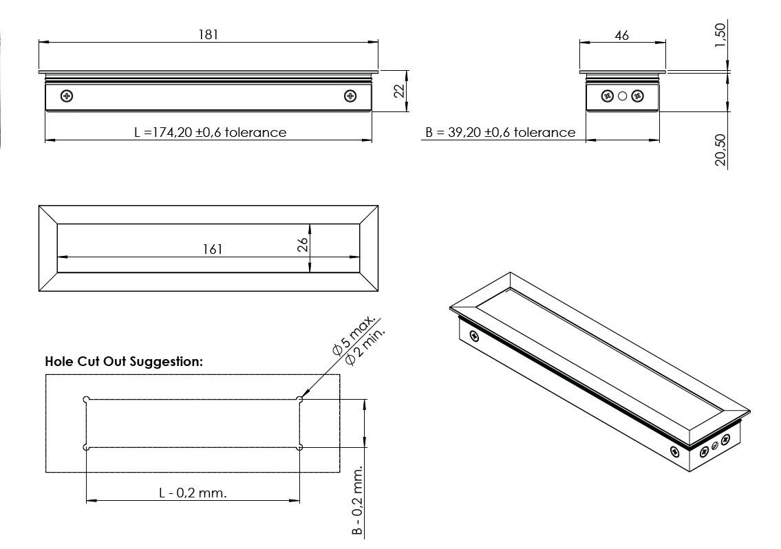 Alu. Grommet "Limbo" 181x46x21,8mm, White W/White Brush
