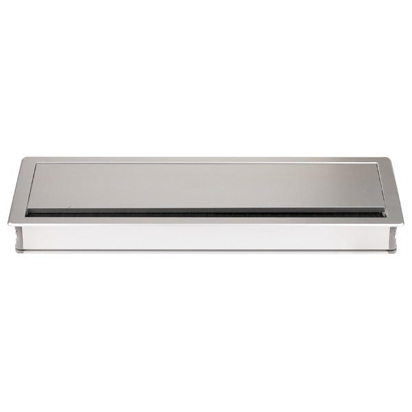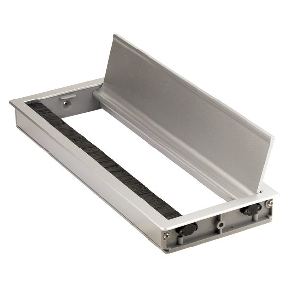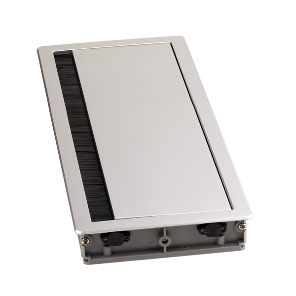 Soft Close Grommet "Punta" 295x116x27,5mm, Silver (RAL9006) Aluminium, W/Brush (Hole Cutting: 290x111mm)