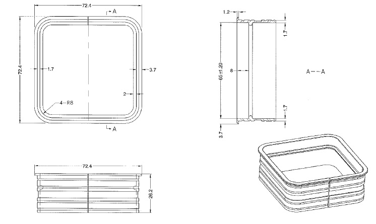 Wire-Pod Aluminium Cable Grommet 69x69x26mm Black, Cut Out: 70 x 70 mm, Radius 8mm