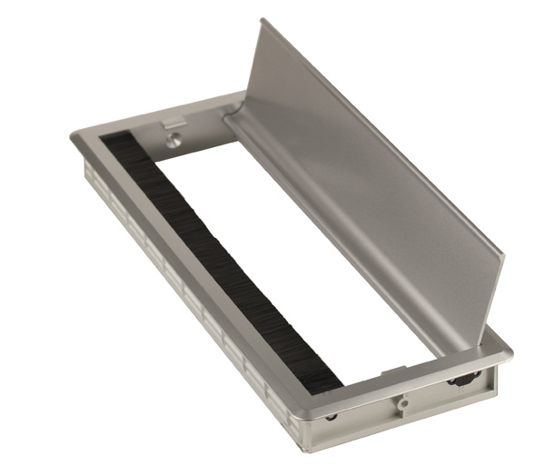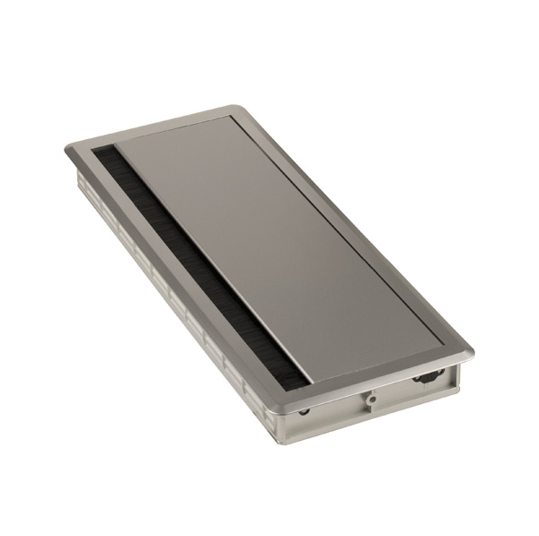 Soft Close Grommet "Mambo" 300x120x27,5mm, Silver,(RAL9006) ABS Frame,Alu. Lid W/Brush.Suggested Hole Cutting 290x111mm