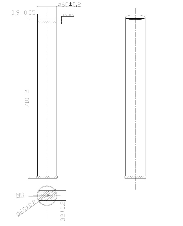 Table Legs (4 Pcs) ø60x710mm, CPL, Adjustable, W/M8x40mm Bolts. (UV-Dics to be bought separately Item: 06.10.080-0)