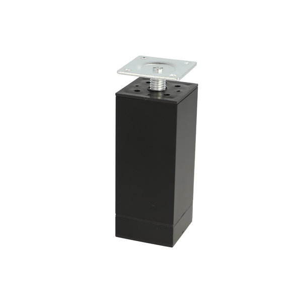 Black Alu Leg Niko 40x40mm, H 100mm, PL 39x39x2mm,cc 29x29mm Stem: M10X27mm ,Black Anodized Finish