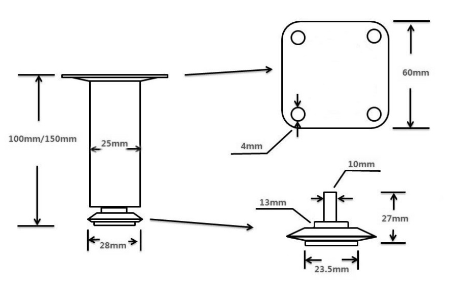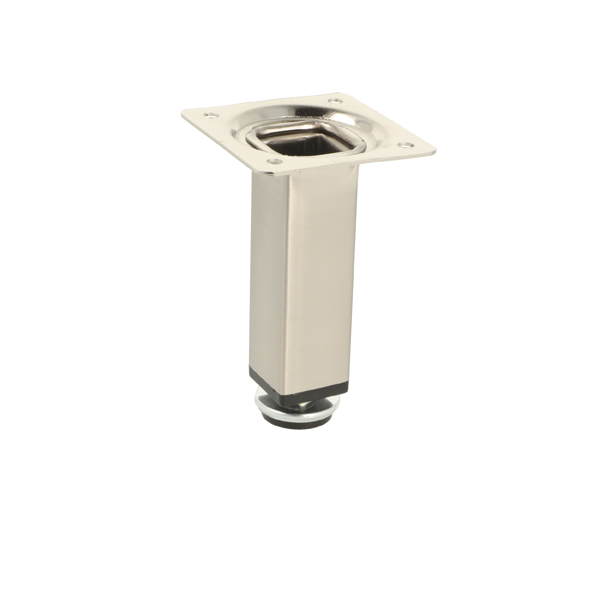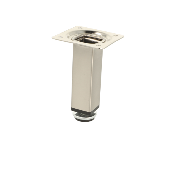 Metal Leg "Vera", 25x25x100mm, SS-Look, W/Plate 60x60mm, cc: 44x44mm, W/Adjustable Glide w/Hex Nut, 10mm Height Regulation