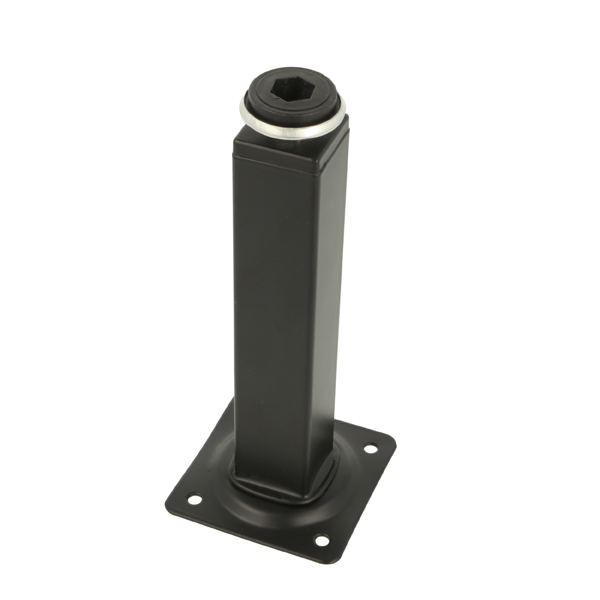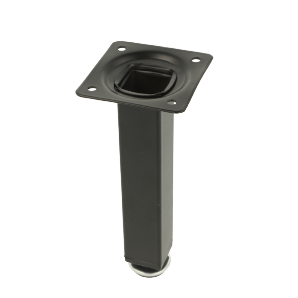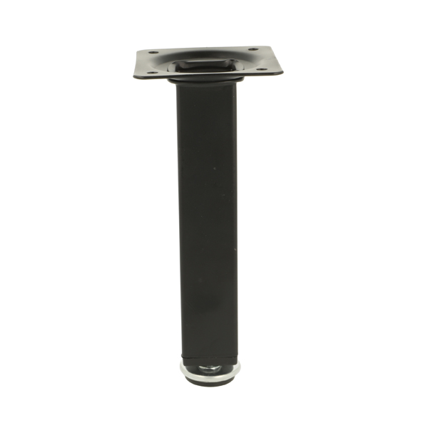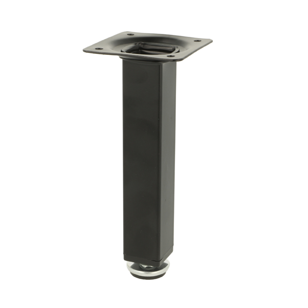 Metal Leg "Vera", 25x25x150mm, Matt Black, W/Plate 60x60mm, cc:44x44mm, W/Adjustable Glide w/Hex Nut, 10mm Height Regulation