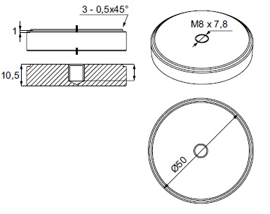 SS304 UV Disc F/Leg ø50 x 10.5mm, W/8mm Hole (W/O Leg) (Sold pr. piece)