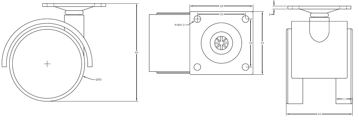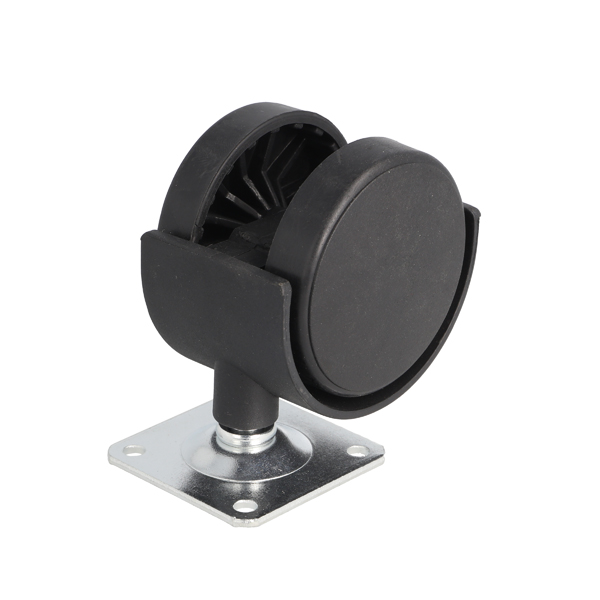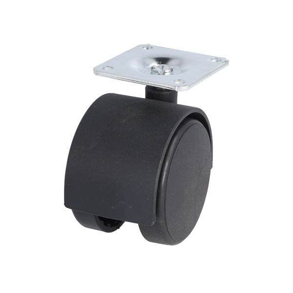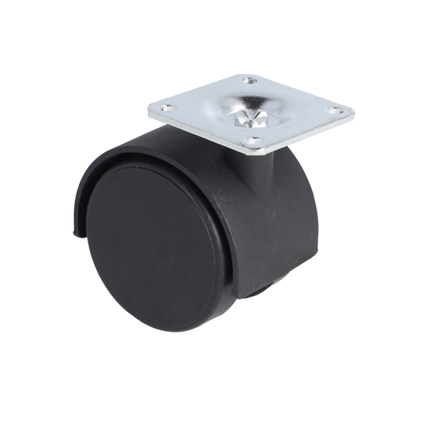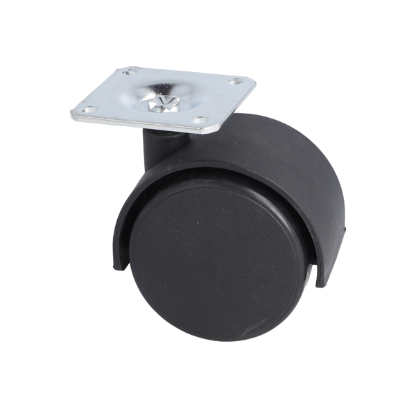 Twin Wheel Castor ø50mm, Black PA, Top Pl 42x42x2mm, cc 32x32mm,Mounting Height: 65mm