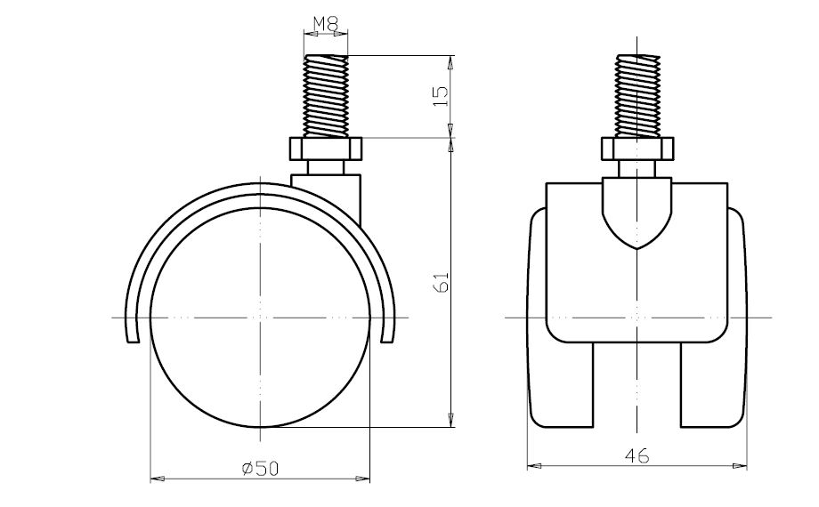 Twin Wheel Castor ø50mm, Black, Stem M8 x 15mm, MH 60mm